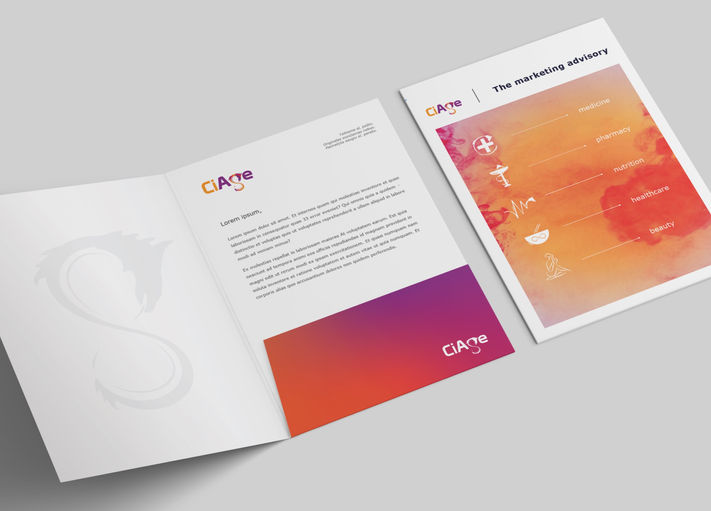 Visual identity for the marketing advisory company CiAge that helps companies run and scale their businesses in medicine, pharmacy, nutrition, healthcare and beauty.