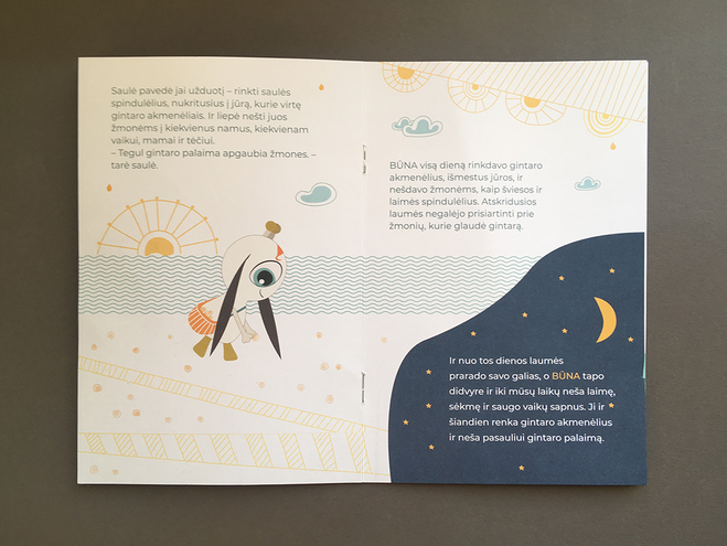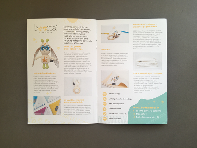 8 pages promotional booklet for Boon'a - children product line featuring amber textile. My role - art direction, booklet design, illustrations.